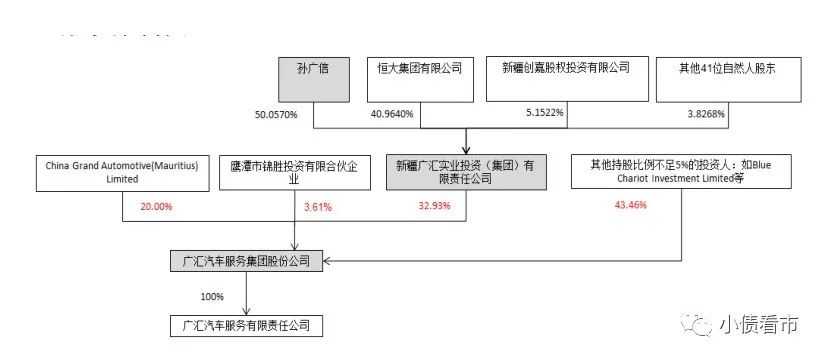 從股權結構看,廣匯汽車的控股股東為新疆廣匯實業投資(集團)有限責任公司,持股比例為32.93%,公司實際控制人為孫廣信。