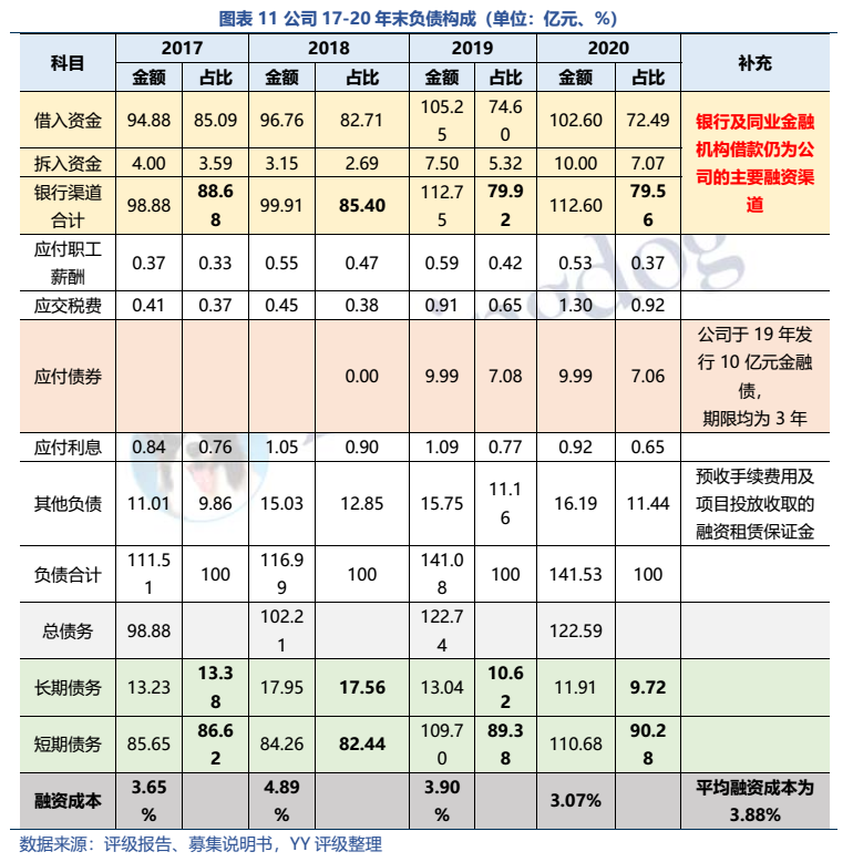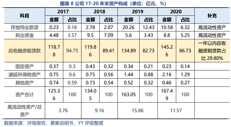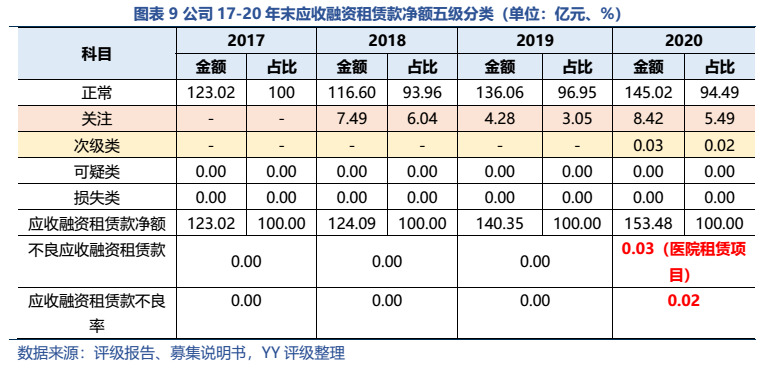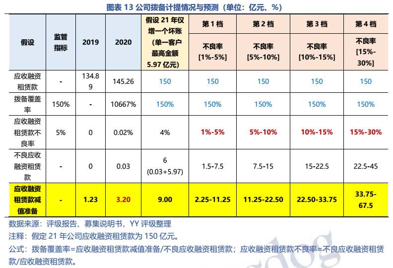 雖然20年公司才出現(xiàn)第一筆不良資產(chǎn)(一筆醫(yī)院租賃項(xiàng)目,0.03億元),但20年以來受疫情等因素影響較多,當(dāng)前公司的關(guān)注+不良資產(chǎn)應(yīng)有較大幅度上升。故本文將公司的不良率分成四個(gè)檔次,分別計(jì)算出不同情況下所需計(jì)提的壞賬準(zhǔn)備金額。結(jié)果顯示,因公司成立初期拓客渠道有限,大中型客戶較多,整體客戶集中度較高,再加上基數(shù)較小(資產(chǎn)規(guī)模小、計(jì)提準(zhǔn)備金也小),只要有一筆大單客戶成為壞賬,公司的計(jì)提壓力就會(huì)有顯著拉升(整體測(cè)算過程較悲觀,僅作為模糊體現(xiàn)公司壞賬壓力的量化結(jié)果,實(shí)際情況有待公開信息披露)。在極端情況下,母公司的資金援助將成為公司抗風(fēng)險(xiǎn)的關(guān)鍵。