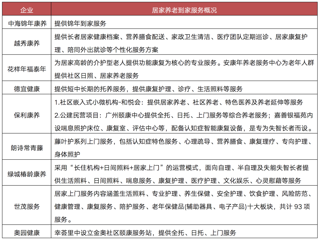 表:提供居家養(yǎng)老到家服務(wù)的企業(yè)及內(nèi)容