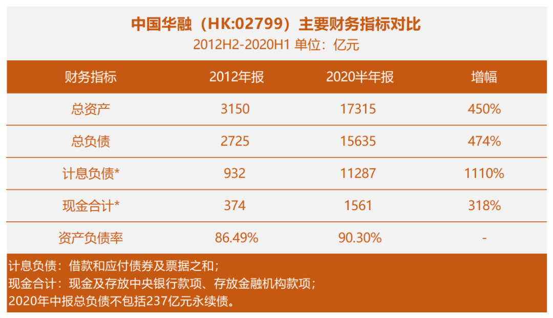 從2012年到2020年,中國華融總資產增加為原來的5.5倍。