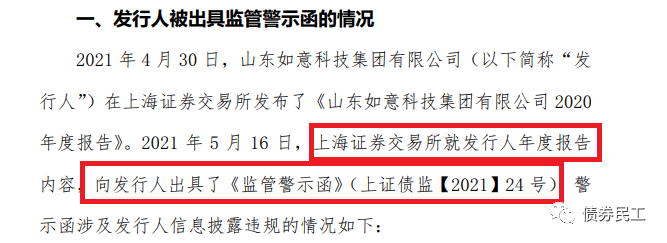 4、東北證券和如意集團(tuán)同步被監(jiān)管機(jī)構(gòu)采取了處罰措施。根據(jù)如意集團(tuán)披露的公告,上海證券交易所已經(jīng)于5月14日出具了《監(jiān)管警示函》,發(fā)行人于5月18日披露了更正的年報(bào)。這一特點(diǎn)充分顯示出了監(jiān)管機(jī)構(gòu)已經(jīng)形成了聯(lián)動(dòng)機(jī)制,全方位對(duì)發(fā)行人和受托管理人進(jìn)行監(jiān)管督導(dǎo)。