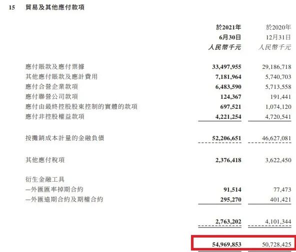 同時,應(yīng)付的也從2020上半年的500億元出頭,增長至2021年同期的小550億元。如下圖,我們看具體結(jié)構(gòu),也很有意思。