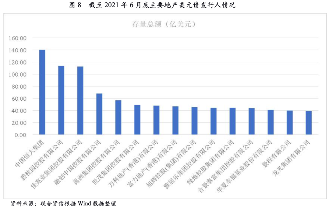 從存量規(guī)模來看,中國恒大集團(tuán)、碧桂園控股有限公司、佳兆業(yè)集團(tuán)控股有限公司美元債存量規(guī)模位居市場前列,易受到境外融資環(huán)境波動的影響。