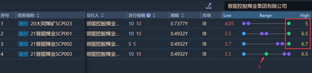 新發債券融資是市場高度關注的一點,也是現在看來最大的難點之一。從去年11月永煤違約至今,煤企很難新發債券,晉控煤業在這段時間(去年11月11日以來)里僅發行了4筆債券,如圖所示,前三筆發債的最終定價都超出了預期定價范圍的上限,最新一筆于5月中旬發行成功的“21晉能煤業SCP003”中標利率終于有所回落,為6%。