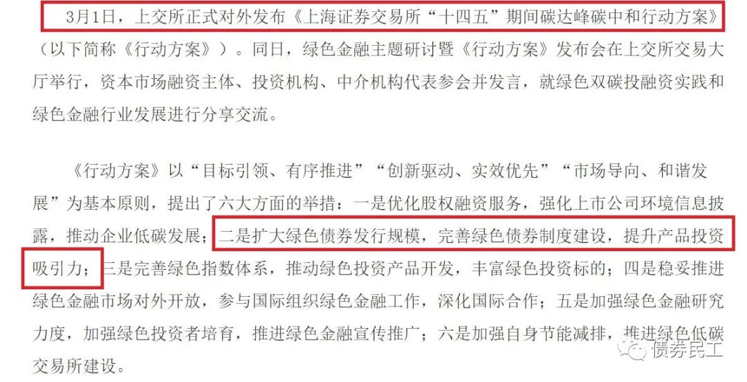 2022年3月1日,上海證券交易所發(fā)布《上海證券交易所“十四五”期間碳達(dá)峰碳中和行動(dòng)方案》,明確提出要“擴(kuò)大綠色債券發(fā)行規(guī)模,完善綠色債券制度建設(shè),提升產(chǎn)品投資吸引力”。這對(duì)于目前快速發(fā)展的綠色債券來(lái)說(shuō),又迎來(lái)了一個(gè)利好政策。