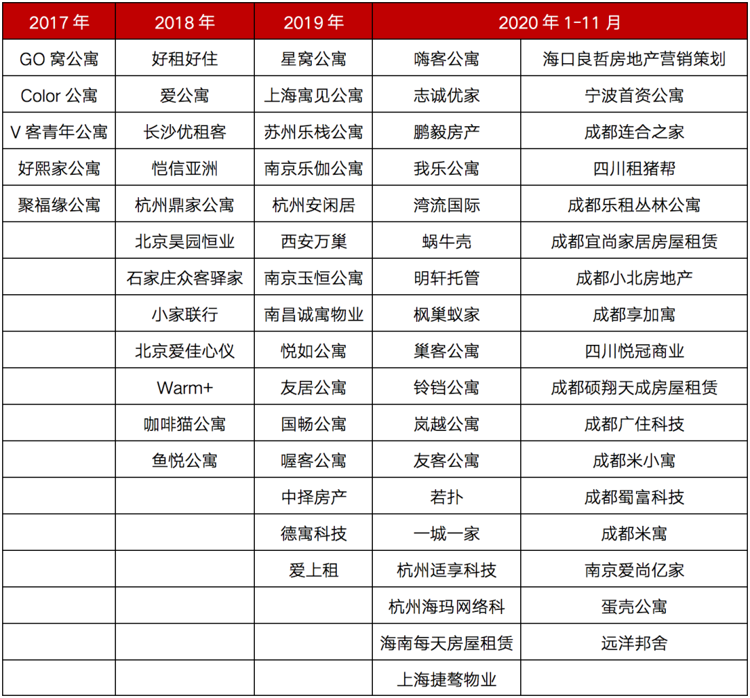 圖:2017年-2020年11月長租公寓企業爆雷數量
