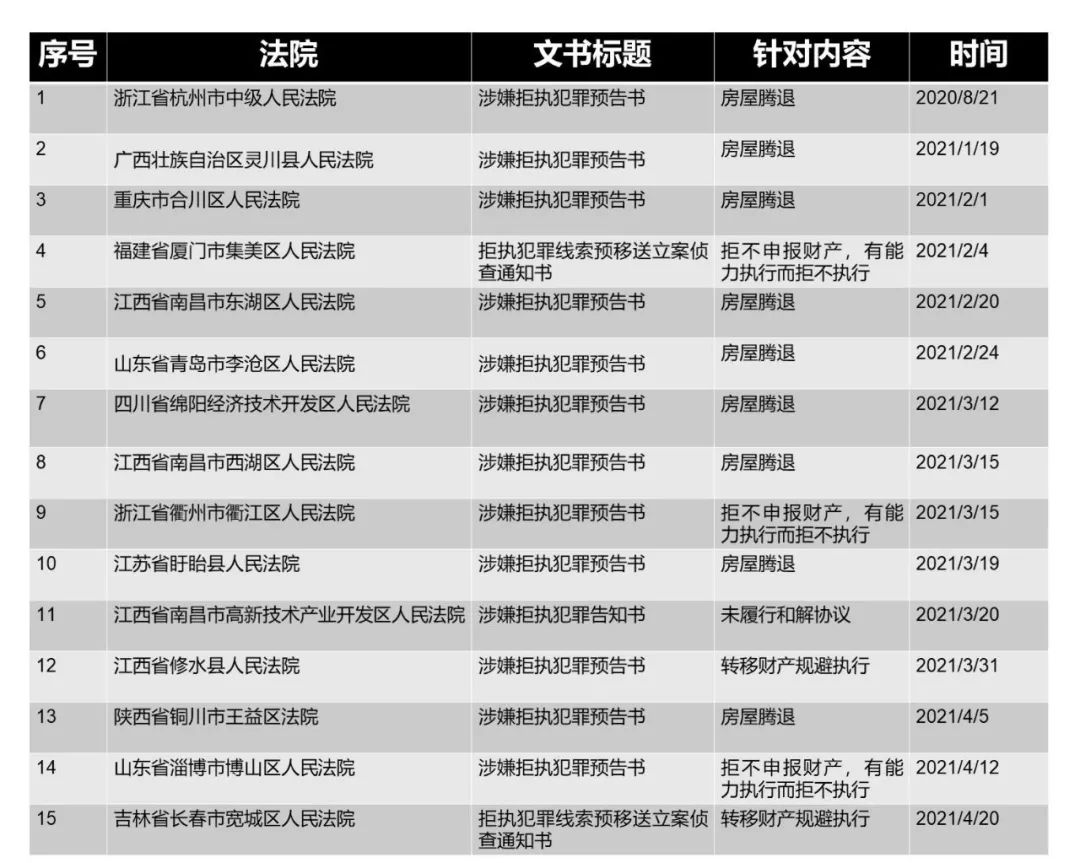 ③ 目前主要針對的拒執類型包括:房屋騰退、拒不申報財產,有能力執行而拒不執行、未履行和解協議、轉移財產規避執行。