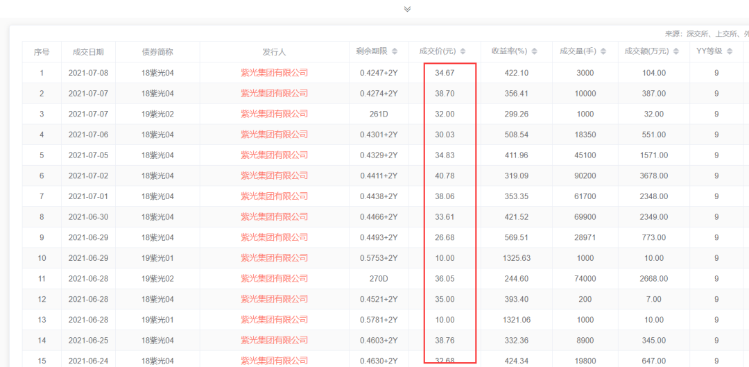 3、發(fā)行才3個(gè)多月就打?qū)φ鄣膫霈F(xiàn)了。寶能下屬鉅盛華的債21深鉅01連續(xù)兩天有凈價(jià)50的成交,作為當(dāng)年的風(fēng)云人物,姚老板在退出萬科大股東之爭以后,用深業(yè)物流和鉅盛華兩個(gè)主體進(jìn)入債券市場(chǎng),但是票面齊刷刷的6.0 6.5 7.0 7.5%,我也從沒有碰到過能夠入庫的買方機(jī)構(gòu)。