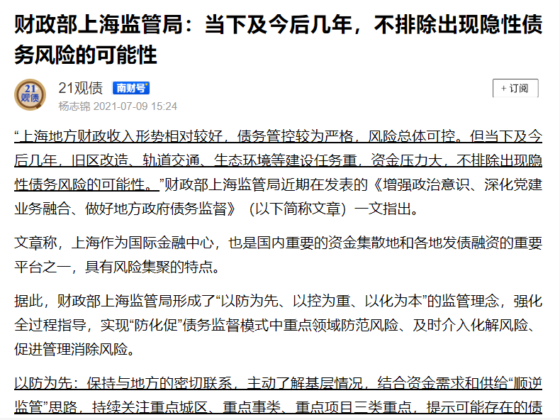 5、財(cái)政部上海監(jiān)管局說,隱性債務(wù)有出現(xiàn)風(fēng)險(xiǎn)的可能。