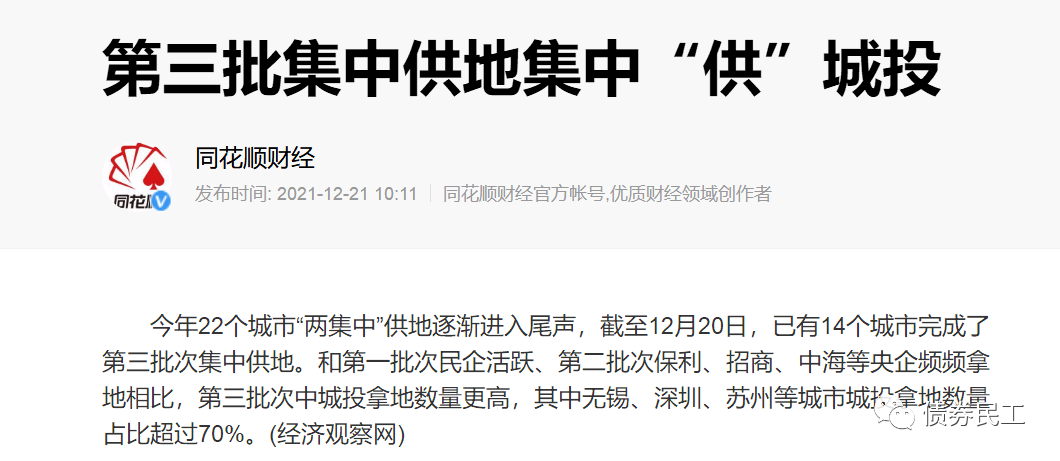 2021年對于房地產公司來說,是一個轉折之年,面臨的挑戰非常之大,部分房地產公司甚至已經發生了違約。但是城投公司開始布局優質房地產業務了(詳見部分城投公司已經開始布局優質房地產業務!)。從近期的公開數據來看,城投公司布局優質房地產業務的速度在加快,在第三批集中供地中,部分城市的城投公司拿地數量占比超過了70%。