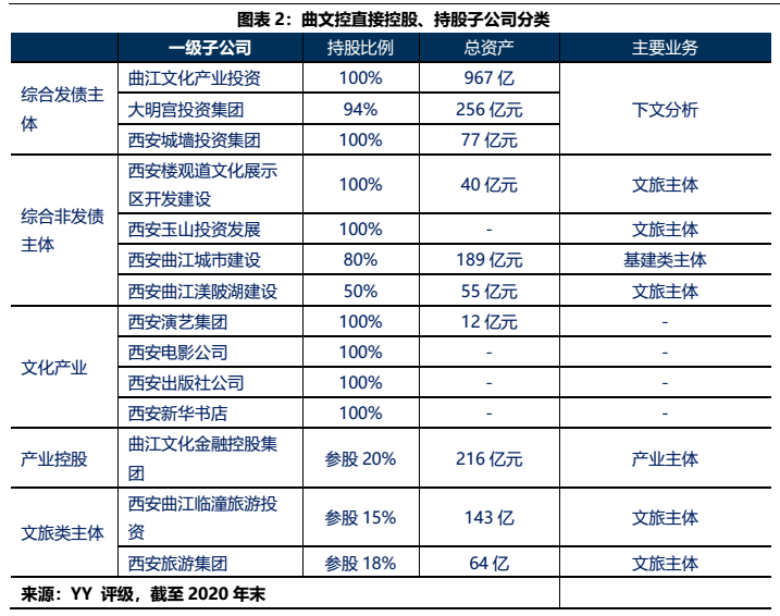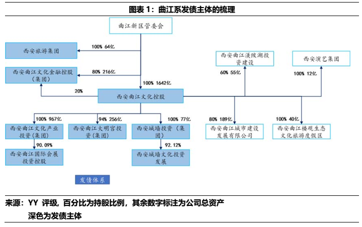 首先我們分析了目前曲江國資體系內(nèi)重要發(fā)債平臺及其核心子公司的分布,其次將拆解的第一個對象錨定為盤子最大的曲文控體系,并且將其從本部、子公司曲文投、大明宮投資以及西安城墻投資四個方向進行深入分析。