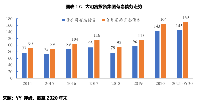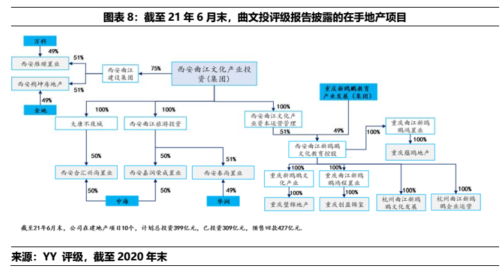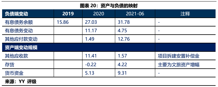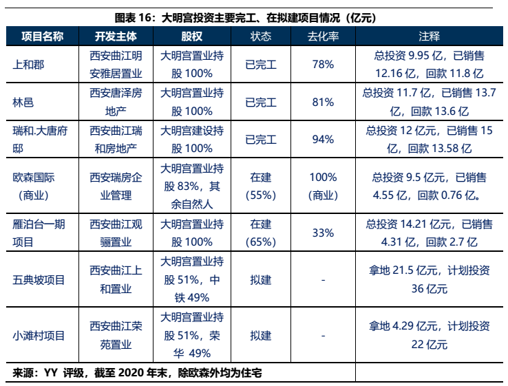 3) 大明宮投資母公司2019-2020年增加的66億元有息債務,多通過往來款形式沉淀于相關(guān)城投類資產(chǎn)(48.69億),地產(chǎn)等產(chǎn)業(yè)相對較少。但需要注意到的一點在于21年公司拿地兩宗,按權(quán)益來看出資規(guī)模在12億元左右,產(chǎn)業(yè)類資金體量有所增長。