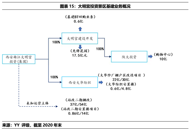 4)西安城墻投資體系資金沉淀規(guī)模小,2020年起始的15.92億有息債務增量沉淀方向以文旅(4億)和城投(12.98億)為主,對整個體系影響不大。