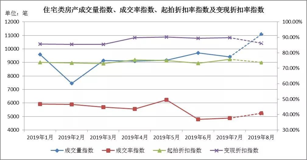 八月預(yù)測:成交量在2494至2864筆左右,成交率指數(shù)區(qū)間[17.32%,18.47%],起拍折扣指數(shù)區(qū)間[69.52%,70.57%],變現(xiàn)折扣指數(shù)區(qū)間[78.95%,81.15%]。
