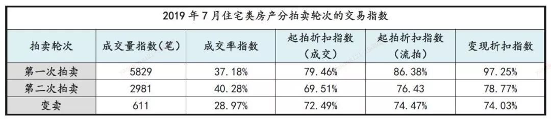 趨勢分析:7月住宅類房產(chǎn)拍賣市場成交量小幅降低,成交量9421筆,環(huán)比下降2.9%;成交率本期變化不大,為37.63%,較6月微升;起拍折扣指數(shù)為75.86%,較上月增長3%,變現(xiàn)折扣指數(shù)為89.89%,基本與6月持平。