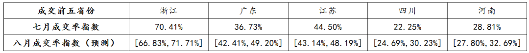 (二) 成交率指數(shù):浙江、江蘇、河南小幅增加,廣東、四川明顯下降