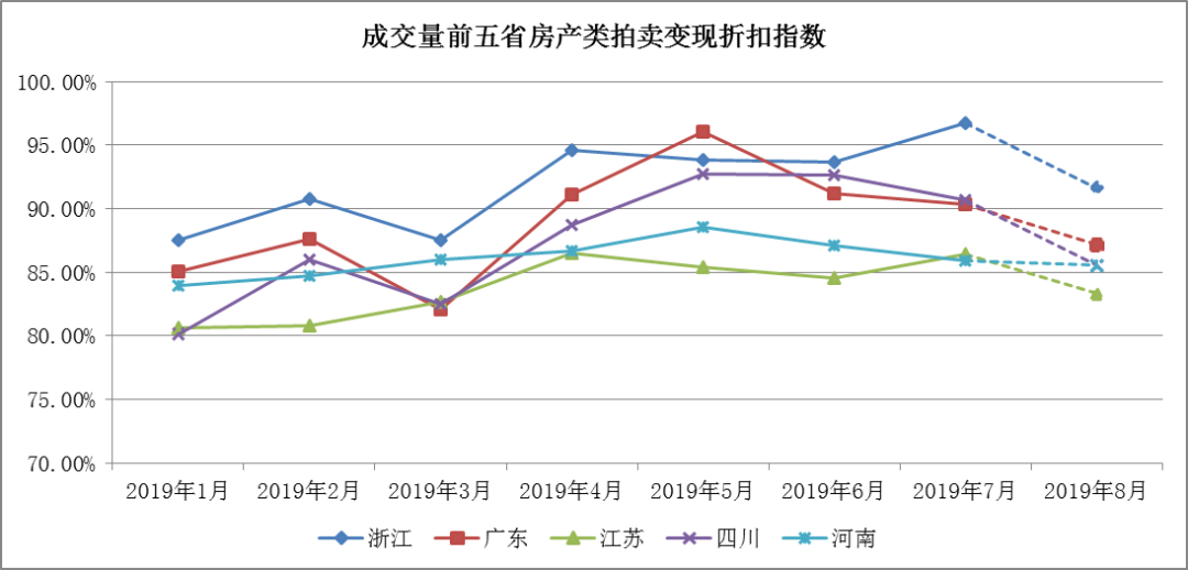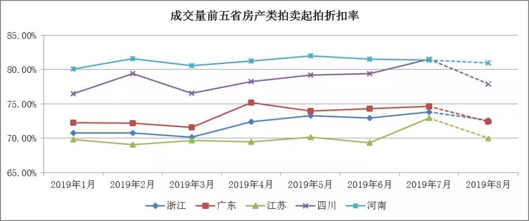(三) 起拍折扣指數(shù):江蘇、四川、浙江、廣東小幅增長,河南省出現(xiàn)微降趨勢