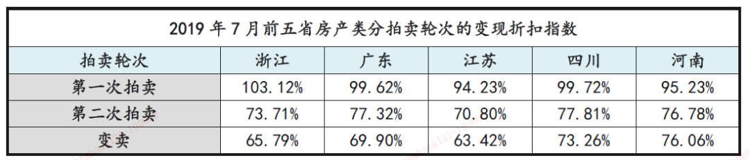 分拍賣輪次的五省變現(xiàn)折扣指數(shù):
