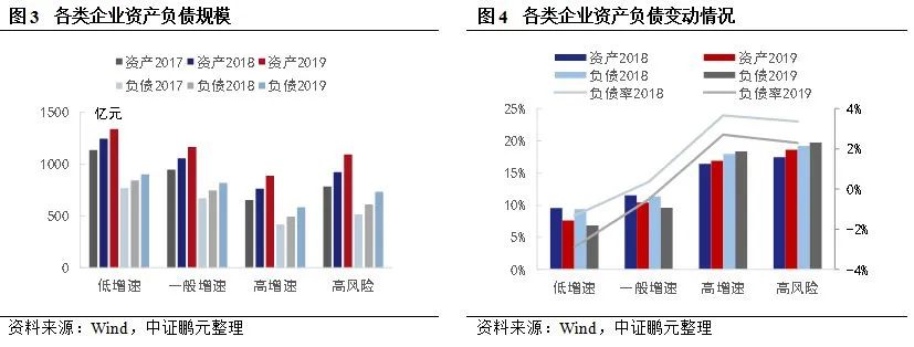 從發行人資產負債規???,高增速企業的資產負債規模相對較小,但從資產負債的變動情況看,高增速企業的資產負債規模增速相對較高,資產負債率增長明顯。