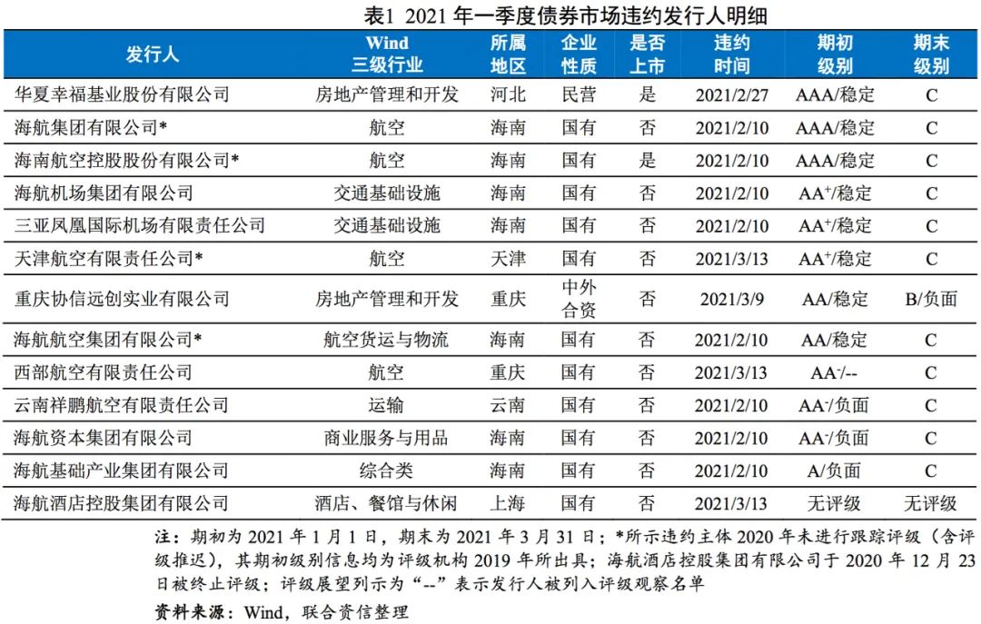 原標題: 【債市研究】2021年一季度中國債券市場評級表現(xiàn)和評級質(zhì)量研究報告——海航系企業(yè)破產(chǎn)重整,違約風險定向集中釋放