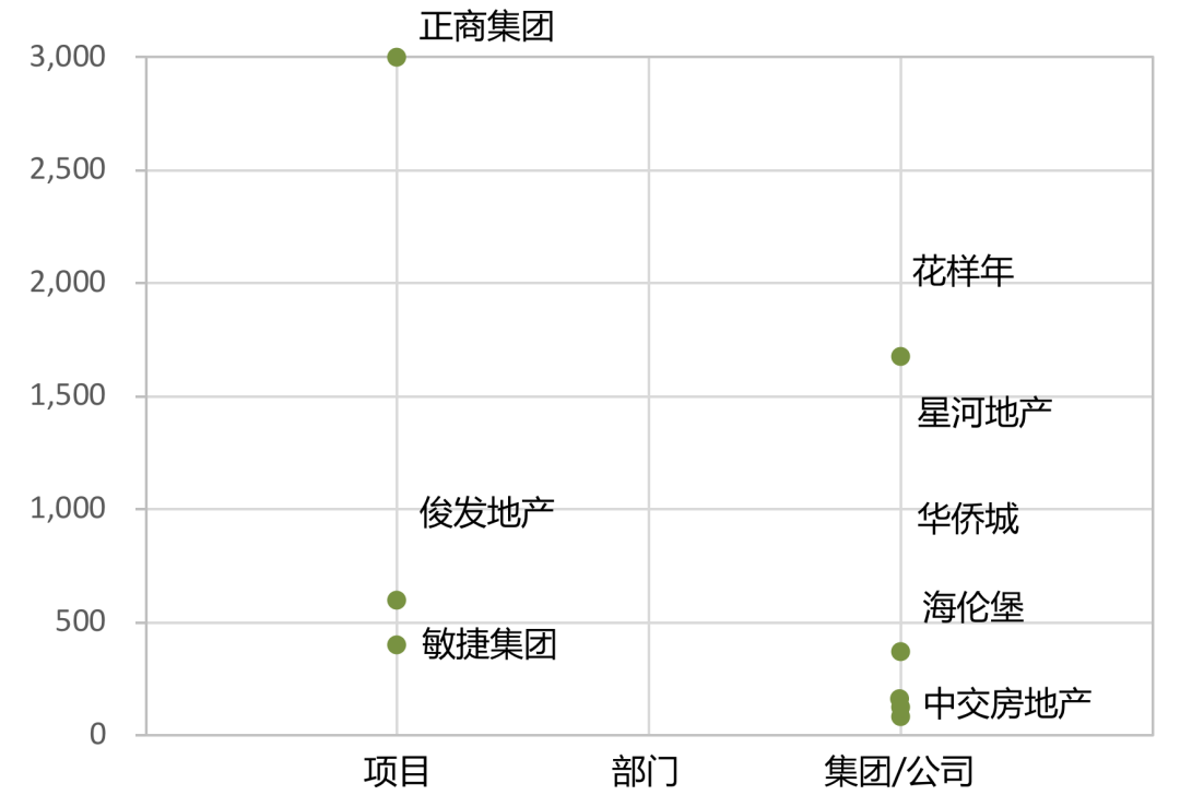 與TOP50房企不同,城市更新業務因對主體資本及渠道要求較高,僅11家TOP51-100房企積極布局城市更新業務板塊,城市更新項目建面主要集中在1000萬平方米以內。