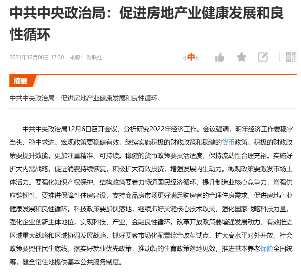 12月6日政治局會議召開。個(gè)人認(rèn)為,此次政治局會議關(guān)于地產(chǎn)的表態(tài)是超預(yù)期的。