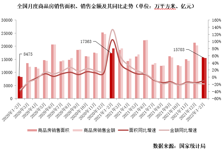 據(jù)國(guó)家統(tǒng)計(jì)局?jǐn)?shù)據(jù):1—2月,商品房銷售面積15703萬(wàn)平方米,同比下降9.6%;商品房銷售額15459億元,下降19.3%。