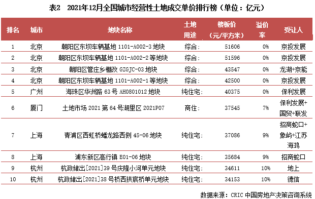 2021年12月,在17城三輪集中土拍收官及三四線城市土地成交放量的拉動下,年末土地成交翹尾現(xiàn)象如期而至,當月成交規(guī)模突破4億平方米,同比也僅下降了3%。與此同時,信貸環(huán)境邊際改善下,土地流拍現(xiàn)象也有所好轉,集中土拍的重點城市中僅個別城市流拍率較上一輪大增。