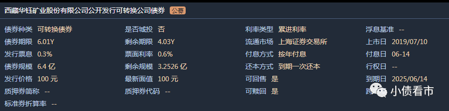 《小債看市》統(tǒng)計(jì),目前華鈺礦業(yè)存續(xù)一只“華鈺轉(zhuǎn)債”,該券發(fā)行于2019年7月,當(dāng)前余額3.25億元,轉(zhuǎn)股價(jià)10.17元。