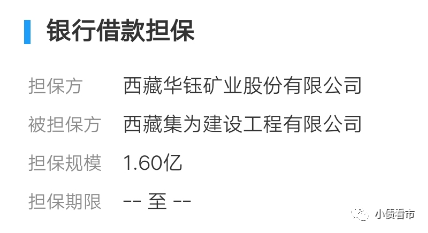截至2020年末,華鈺礦業(yè)為西藏集為建設(shè)工程有限公司貸款事項(xiàng)向擔(dān)保公司拉薩市信用融資擔(dān)保有限責(zé)任公司提供反擔(dān)保,擔(dān)保余額1.6億元,占期末凈資產(chǎn)的6.36%。