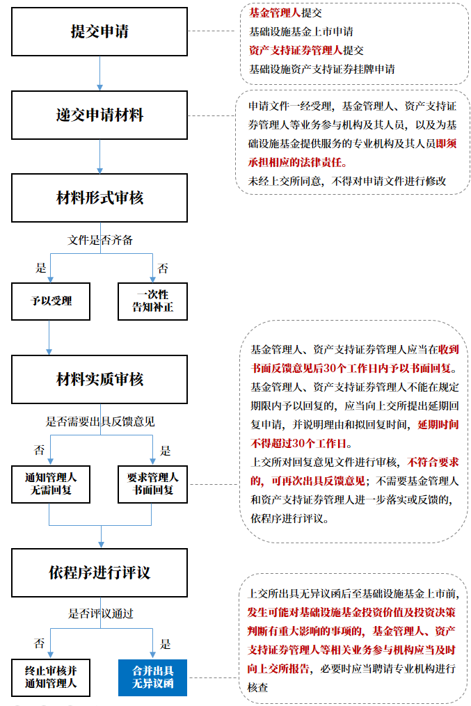 上交所主要在業務辦法第二章“申請條件與確認程序”對公募REITs的基本審核程序及相關材料要求進行了明確, 該部分主要體現出兩個特點: