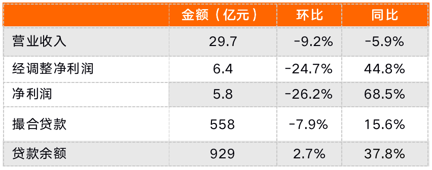 財(cái)報(bào)顯示,業(yè)務(wù)結(jié)構(gòu)調(diào)整及“降速保質(zhì)”策略下,樂(lè)信三季度業(yè)績(jī)有所下滑,三季度實(shí)現(xiàn)營(yíng)業(yè)收入29.7億元,同比減少5.9%,環(huán)比減少9.2%;實(shí)現(xiàn)凈利潤(rùn)5.8億元,由于低基數(shù)同比增長(zhǎng)68.5%,但環(huán)比減少26.2%;樂(lè)信的輕資本模式轉(zhuǎn)型在繼續(xù),不承擔(dān)信用風(fēng)險(xiǎn)的平臺(tái)業(yè)務(wù)實(shí)現(xiàn)收入7.8億元,占營(yíng)收的比重環(huán)比增加7.2個(gè)百分點(diǎn)至26.1%;此外,三季度末的90天+逾期率1.85%,環(huán)比持平,三季度繼續(xù)發(fā)力小微貸,促成貸款52億元,占季度新增貸款的比重增至9.3%。