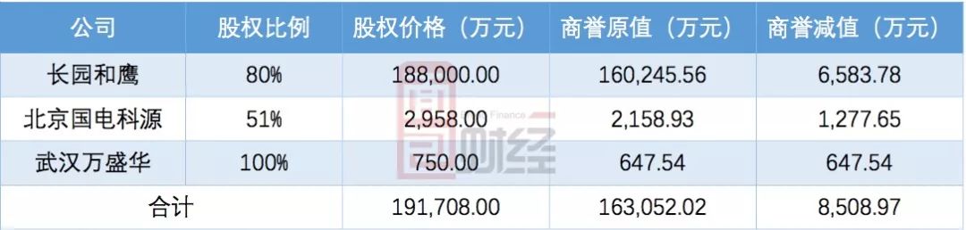 其中,武漢萬盛華雖然計提的數(shù)額不大,但卻是全額計提,而商譽減值數(shù)額最大的為長園和鷹。