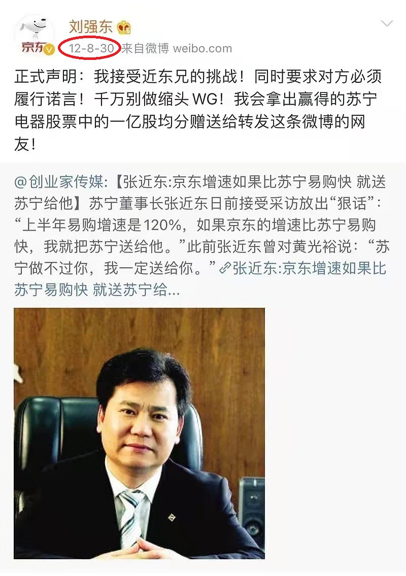 2012年,如日中天的張近東遭遇江蘇老鄉(xiāng)劉強(qiáng)東“當(dāng)頭一棒”。當(dāng)年8月14日,劉強(qiáng)東率先發(fā)起價(jià)格戰(zhàn),聲稱(chēng)京東大型家電三年內(nèi)零毛利,保證比蘇寧連鎖門(mén)店便宜10%以上。張近東接受挑戰(zhàn),開(kāi)始降價(jià),并大力發(fā)展線上商城、加強(qiáng)物流建設(shè),還承諾線上線下同價(jià)。
