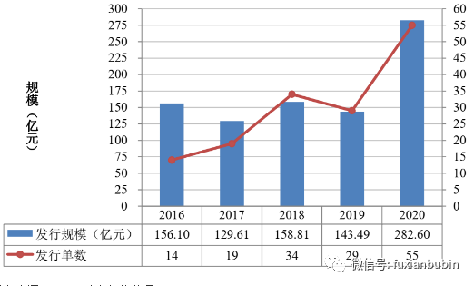 相較于2019年,2020年不良資產(chǎn)證券化產(chǎn)品發(fā)行單數(shù)從29單增加到55單,發(fā)行規(guī)模從143.49億元增加至282.60億元,凈增139.11億元,同比增長96.95%。