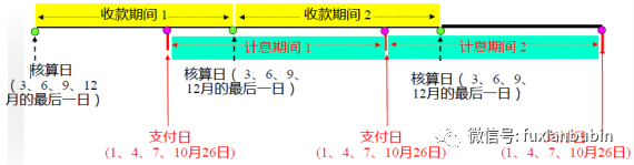 支付日一般有明確的日期(如1/4/7/10月的26日),如果該日不是工作日,則順延到下一個(gè)工作日;計(jì)息期間為固定期限,計(jì)息期間不因支付日的變動而變動。進(jìn)一步細(xì)化期間及各個(gè)日期情況如下: