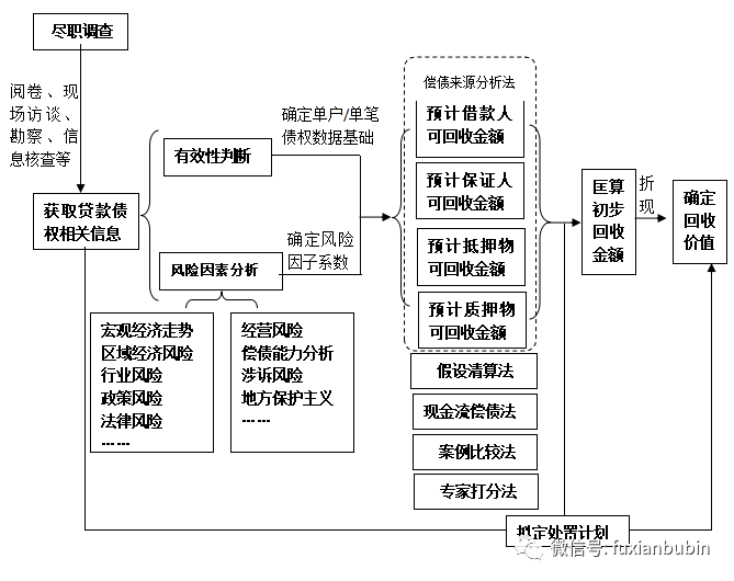 在基礎(chǔ)資產(chǎn)信用質(zhì)量分析上,要結(jié)合不良資產(chǎn)的特點(diǎn),以資產(chǎn)回收率和資產(chǎn)相關(guān)性作為審查的重點(diǎn),結(jié)合貸款人所在地區(qū)、貸款人所屬行業(yè)、擔(dān)保類型、抵押物類型、債務(wù)人經(jīng)營情況、企業(yè)性質(zhì)、債務(wù)人集中度對資產(chǎn)池指標(biāo)進(jìn)行分析,然后再對平均資產(chǎn)相關(guān)性、平均回收率、回收時(shí)間分布、現(xiàn)金流和壓力測試等資產(chǎn)池信用質(zhì)量指標(biāo)進(jìn)行分析。其中,針對區(qū)域宏觀經(jīng)濟(jì)、區(qū)域司法環(huán)境、借款人情況、擔(dān)保人情況、抵押物情況和擬處置方案等內(nèi)容,以重要性和代表性為原則進(jìn)行抽樣分析,形成抽樣盡調(diào)樣本;針對發(fā)起人的靜態(tài)池、動態(tài)池的歷史回收數(shù)據(jù),進(jìn)行數(shù)據(jù)模擬判別回歸分析,統(tǒng)籌上述信息,對基準(zhǔn)情景資產(chǎn)池回收金和回收時(shí)間進(jìn)行測算,對于不良資產(chǎn)證券化的評級基本流程如下圖所示:
