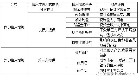不良資產(chǎn)池的信用評級很低,必須經(jīng)過信用增級,發(fā)行信用評級高的新證券,才能得到市場的認(rèn)可。信用增級的主要方式分為兩種,分別是內(nèi)部信用增級和外部信用增級。外部信用增級操作起來比較簡單,最主要依賴于擔(dān)保人的信用。而內(nèi)部信用增級是資產(chǎn)證券化常采用的方法,其主要通過證券化的交易結(jié)構(gòu)設(shè)計(jì)來完成。