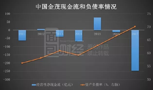 與近年來中國房地產企業整體情況一樣,中國金茂的負債率在逐年攀升,從2014年的59.19%提升至2017年末的70.08%。目前,中國金茂70.08%的資產負債率,處于行業中等水平。由于中國金茂的投資物業是按公允價值入賬,因此其資產負債率的真實水平可能會要高一點。