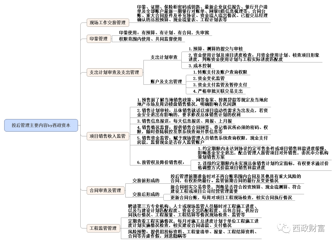 在長期的地產融資業務實踐中,地產非標中實質上為債性的產品占了絕大部分的權重,地產前融機構的真股投資體量所占的比例微乎其微。受債性投資的影響,以往的地產前融更多地停留在常規的監管層面,也即前融資金的退出更多的是依賴于房企所屬集團的兜底,包括產品層面的劣后安排、對賭層面的回購以及差額補足、流動性支持等。房企此輪爆雷引發行業洗牌后,地產前融業務的風控和投后管理變得更加注重對項目公司及項目本身的投資研判、盈利分析及現場監管。
