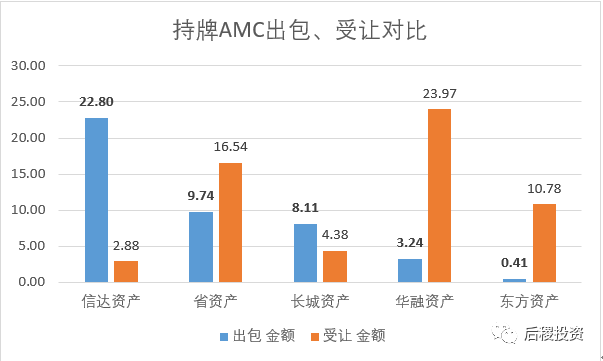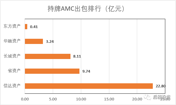持牌AMC出包金額超過40億,包括了持牌AMC-持牌AMC、持牌AMC-其它和二級投資機構等多種轉讓模式。
