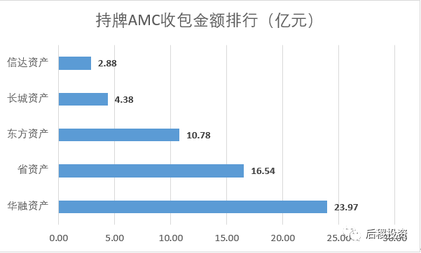 持牌AMC收包超過57億,包括了銀行-持牌AMC、代持平臺-持牌AMC、持牌AMC-持牌AMC多種轉讓模式。