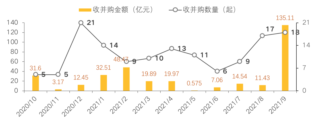 在資本市場開始出現(xiàn)回調(diào)的過程中,市場頻發(fā)企業(yè)大宗收并購事件。根據(jù)克而瑞物管&中物研協(xié)監(jiān)測,本月上市物業(yè)服務(wù)企業(yè)對外公告收并購事項(xiàng)新增18起,交易金額135.11億元。