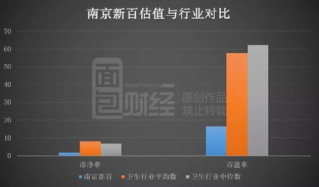 截止2018年7月4日收盤,南京新百總市值146億,市凈率1.8倍,市盈率16.4倍。而統(tǒng)計數(shù)據(jù)顯示,當前A股醫(yī)療衛(wèi)生行業(yè)公司,市凈率中位數(shù)為6.96倍,平均數(shù)為8.1倍;市盈率中位數(shù)為62.4倍,平均數(shù)為57.8倍。