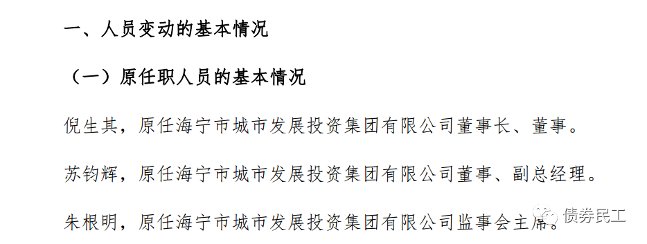 2、2022年1月14日,海寧市城市發展投資集團有限公司公告,公司的董事長、副總經理、監事會主席發生變動,并新增了部分董事。