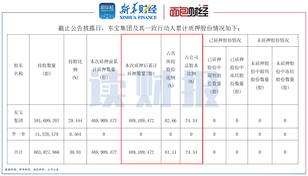 圖4:東寶集團及其一致行動人累計質(zhì)押股份情況