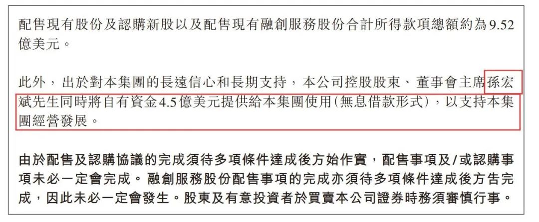 11月14日,融創(chuàng)中國公告披露:融創(chuàng)的董事會主席孫宏斌先生,將自有資金4.5億美元無息提供給集團,以支持融創(chuàng)的經(jīng)營發(fā)展。