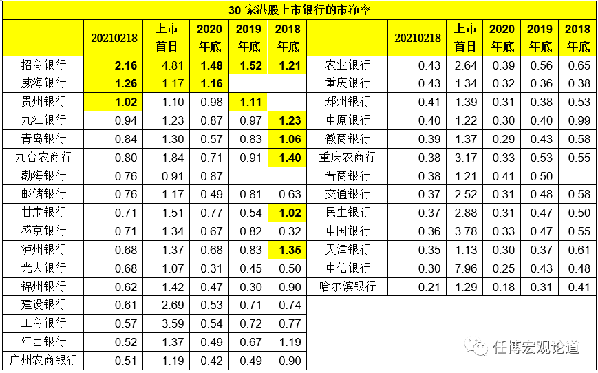 1、目前30家港股上市銀行中,僅招商銀行、威海銀行與貴州銀行等3家銀行未破凈,另外27家均已破凈。不過考慮到威海銀行剛于2020年10月12日上市,因此其市凈率的參考價值同樣不高。
