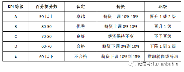 通過上述交流所形成的目標(biāo)任務(wù)后,企劃部搭建完善的KPI考核指標(biāo)體系進(jìn)行考核,其考核結(jié)果應(yīng)用于相關(guān)人員的晉級(jí)、晉升、淘汰等。具體考核級(jí)別為: