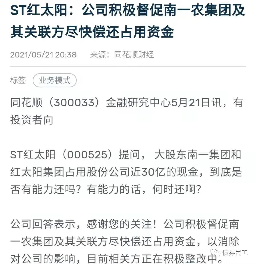 光一科技此次對(duì)控股股東和實(shí)際控制人提起訴訟的原因主要是占用上市公司資金和違規(guī)擔(dān)保,在承諾的2021年5月20日之前沒(méi)有按照承諾解除。事實(shí)上,控股股東對(duì)上市公司的資金占用并不鮮見(jiàn),占用資金會(huì)嚴(yán)重影響上市公司的發(fā)展,影響上市公司的獨(dú)立性。比如同樣在5月21日,上市公司南京紅太陽(yáng)生物化學(xué)有限責(zé)任公司回答投資者提問(wèn),正在督促南京第一農(nóng)藥集團(tuán)有限公司及其關(guān)聯(lián)方盡快償還占用資金。南京第一農(nóng)藥集團(tuán)有限公司為紅太陽(yáng)的第一大股東。